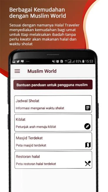 Fitur-fitur aplikasinya cukup lengkap seperti Arah Kiblat, Waktu Sholat, Lokasi Masjid dan Restoran Terdekat dan akan menyusul fitur-fitur kebutuhan muslim lainnya.